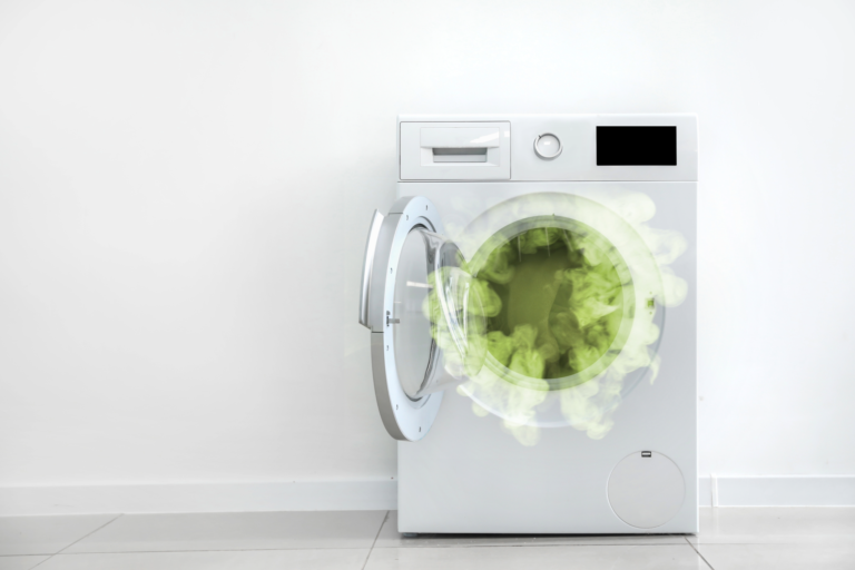 Bad smell usually comes from dirty drum, mold buildup, blocked drain pipe, or motor overheating.